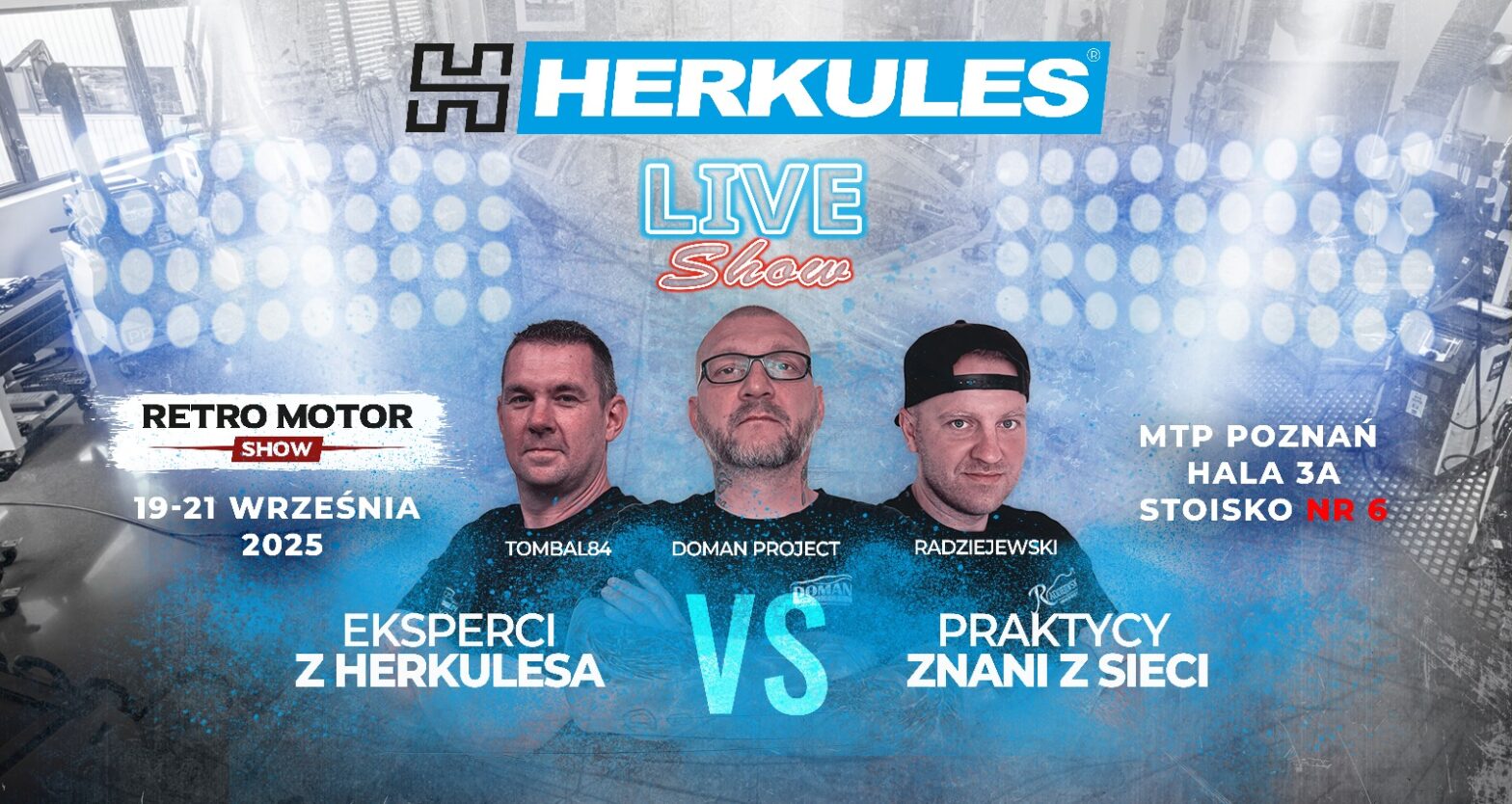 Podczas nadchodzącej edycji targów RETRO MOTOR SHOW w Poznaniu, które odbędą się w dniach 19–21 września 2025 roku, firma HERKULES AUTO-TECHNIKA – lider w dziedzinie wyposażenia serwisów blacharskich w Polsce – zaprasza na wyjątkowe wydarzenie pod hasłem: „KLEPANIE NA EKRANIE”